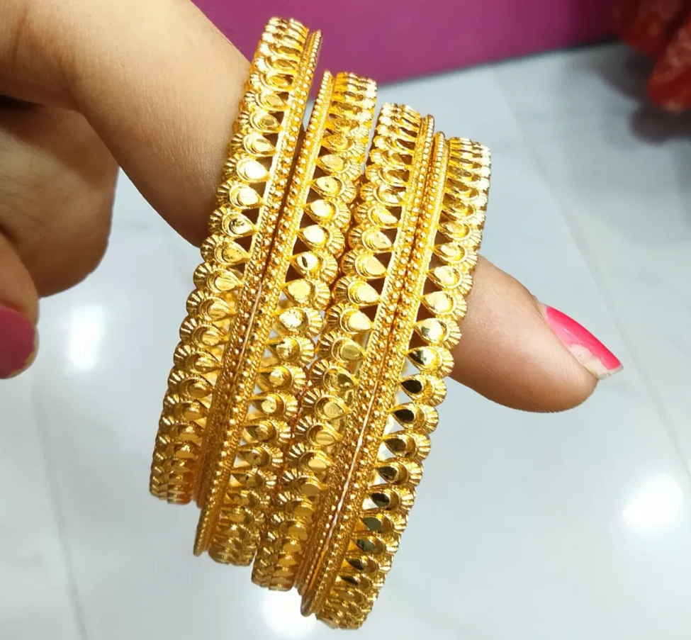 Name : (2-4) traditional gold plated Bangles Size : 2.4 Base Metal : Alloy Occasion...