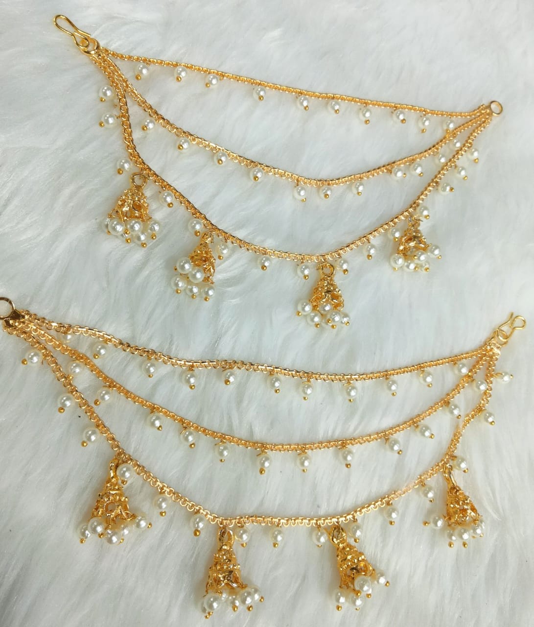 Gold plated kanchain 3 layer long bridal wedding ear kan chain