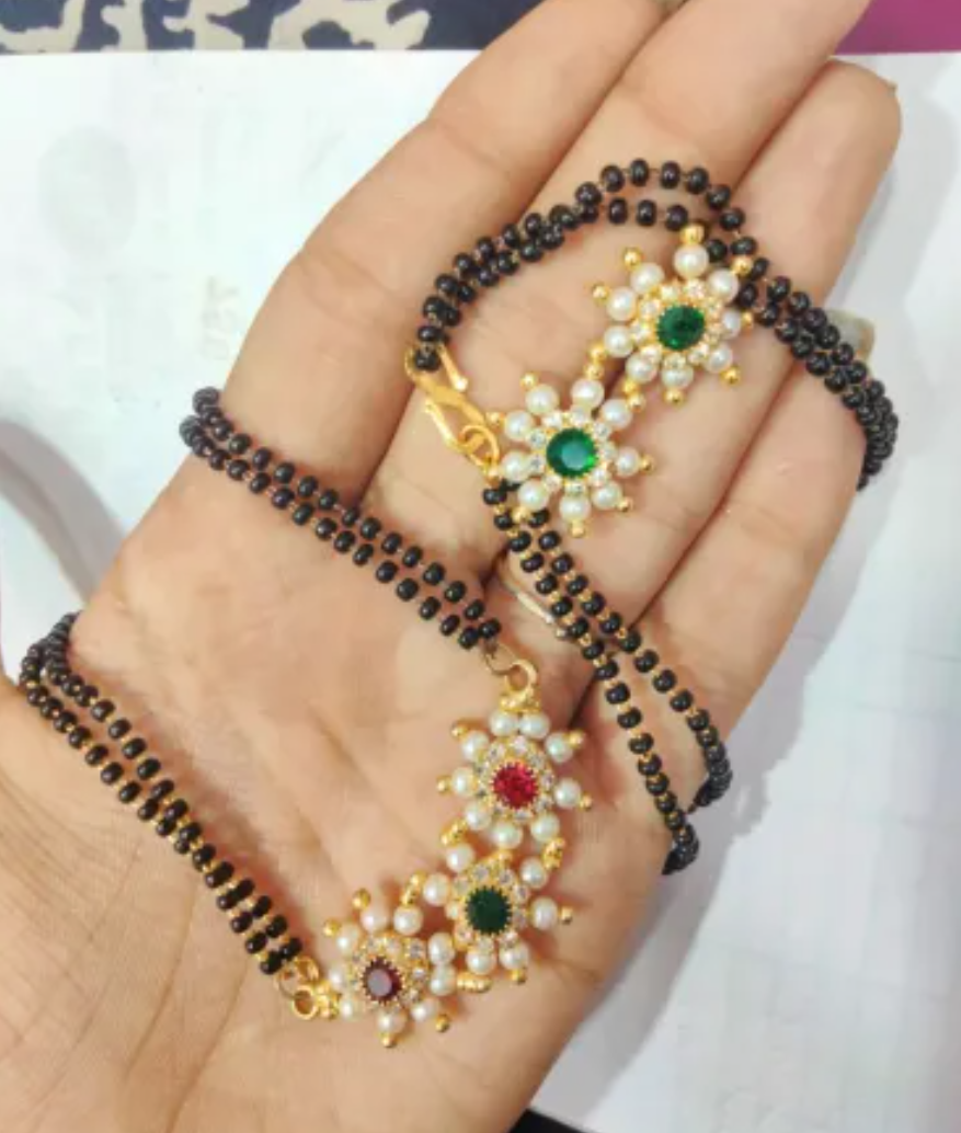 Product Details : "A traditional Indian bridal or ceremonial jewelry set, featuring a mangalsutra paired...