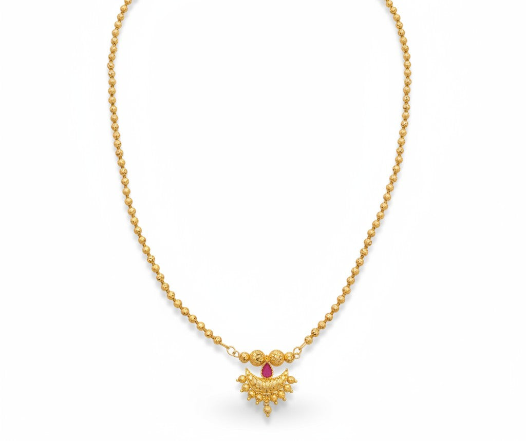 Embrace the royal heritage of Maharashtra with this stunning Chandrakor Necklace. This necklace features the...