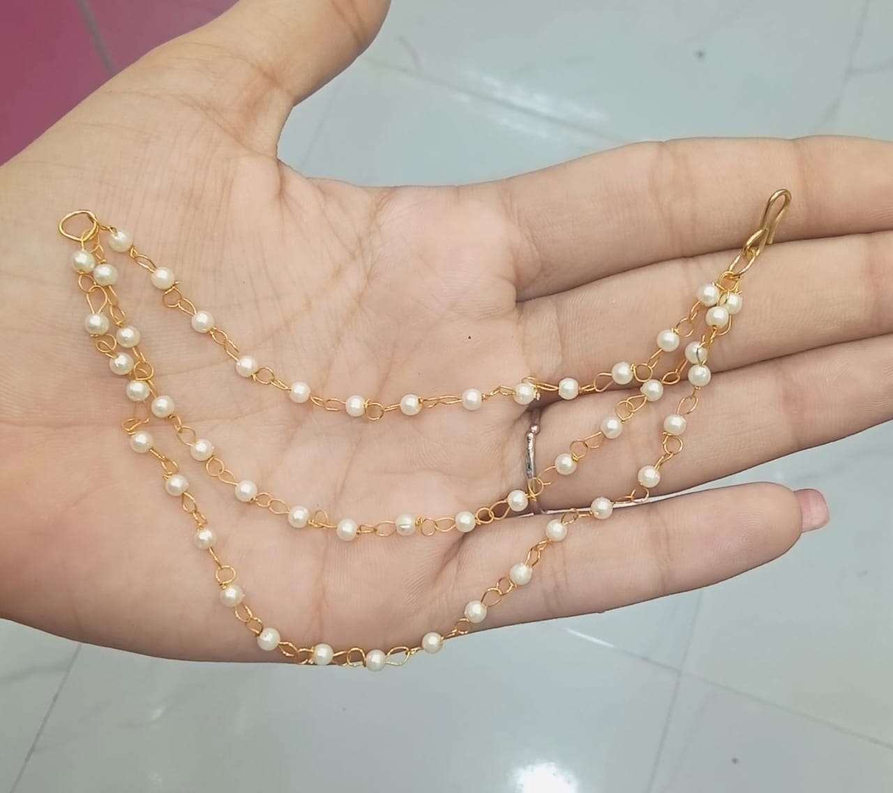 Elevate your traditional jewelry collection with these beautiful multi-layered ear chains, featuring an abundance of delicate pearls. They offer a classic and refined extension to your earrings, ideal for adding a touch of understated elegance to your Indian outfits. Base Metal : Alloy Occasion : Ethnic, Western Plating : Gold Plated